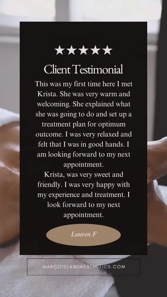 Lisa is available for appointments in the Marco Island location on Mondays only.